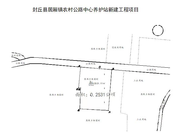 封丘縣居廂鎮農村公路中心養護站新建工程項目建設用地,擬作為交通運輸項目(0.2531公頃)用地。