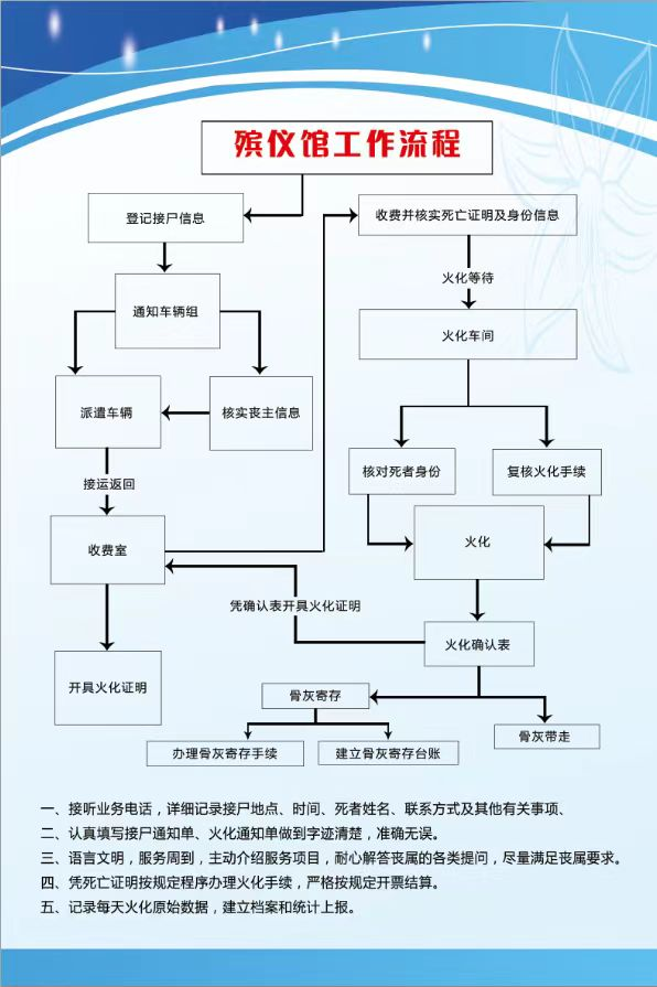 環(huán)境整潔:保持殯儀館內(nèi)外環(huán)境整潔、肅穆,符合衛(wèi)生與消防標(biāo)準(zhǔn)。