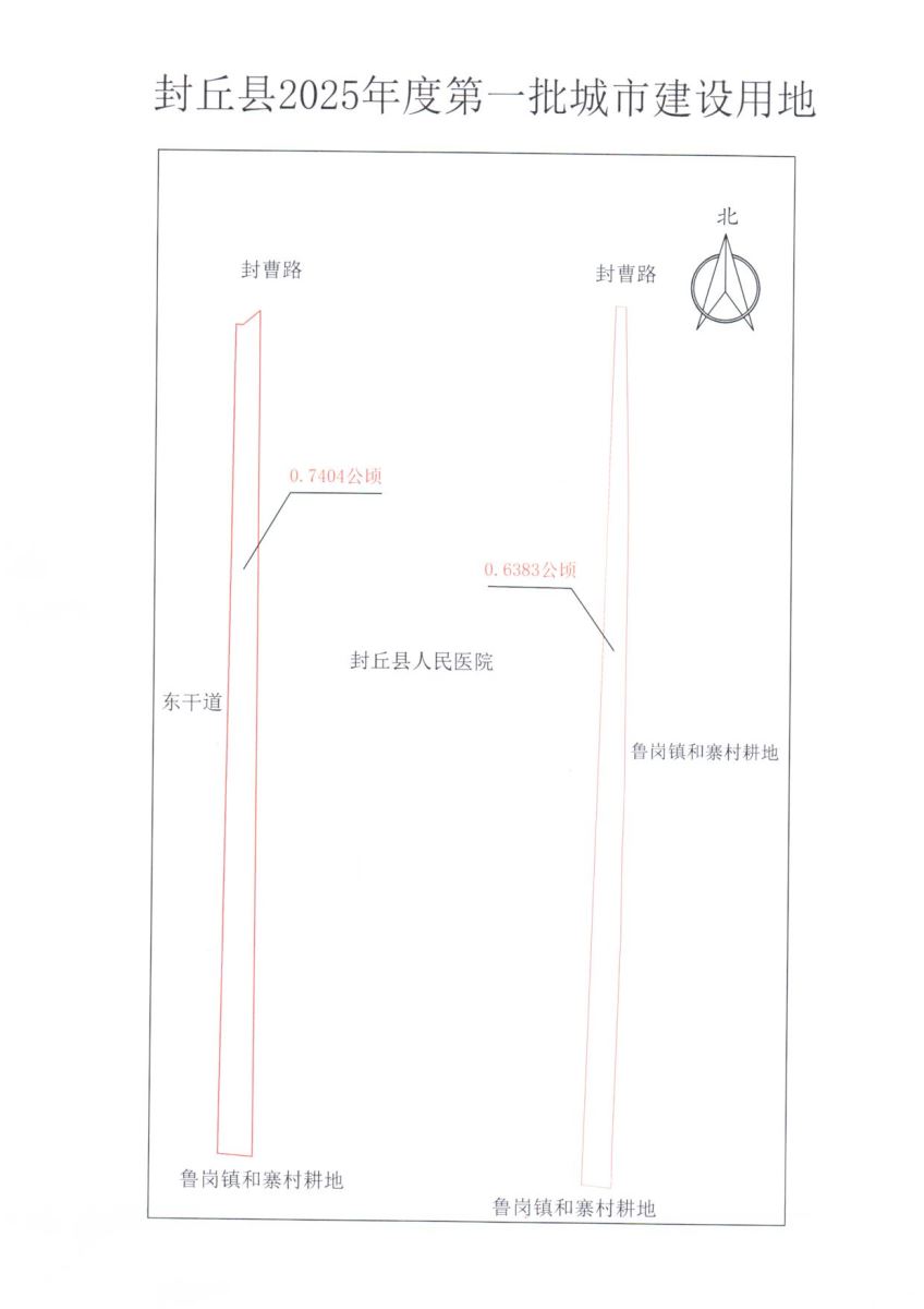 擬征收地塊一四至范圍:東至封丘縣人民醫院新院址,西至東干道,南至李家建承包地,北至封曹路;