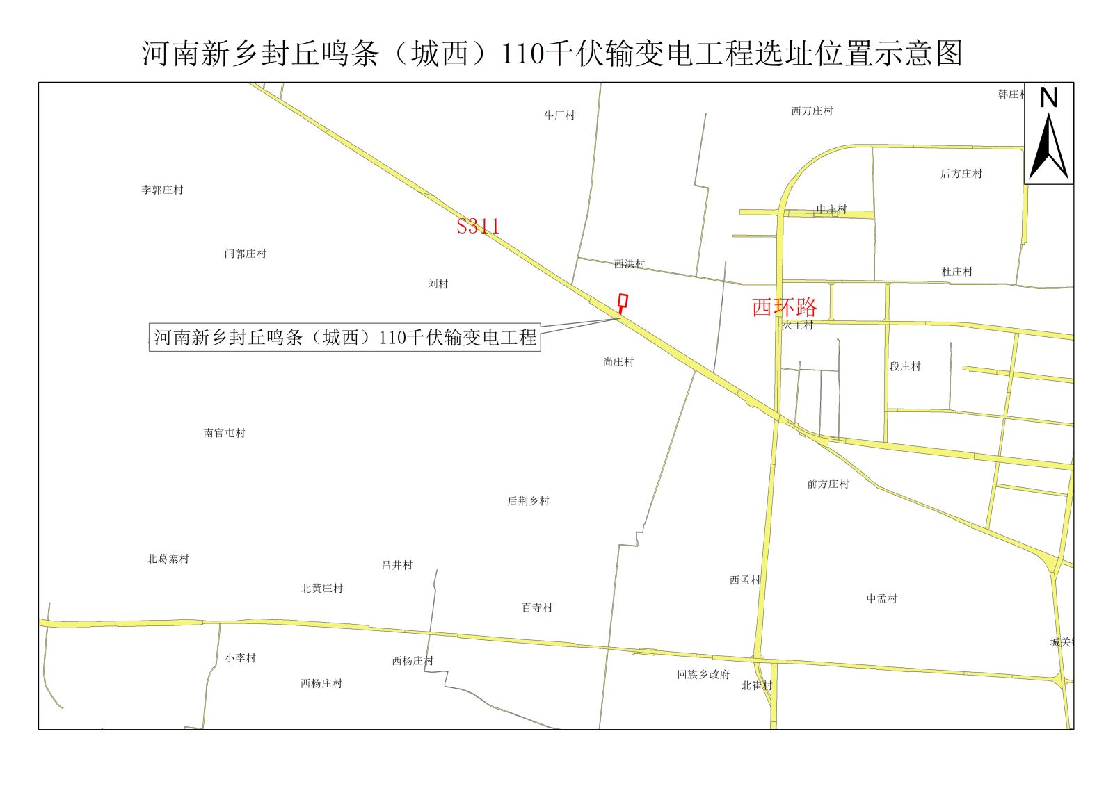 河南新鄉(xiāng)封丘鳴條(城西)110千伏輸變電工程選址方案公示